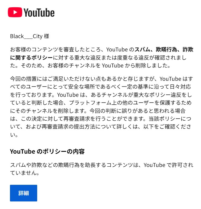 YouTube チャンネル削除