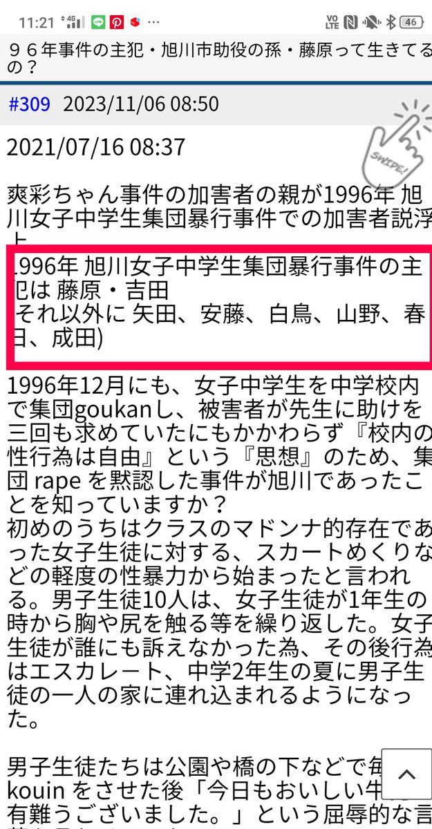 1996年12月に発生した北海道旭川市の市立中学校の女子生徒に対する集団性的暴行・強姦事件である。