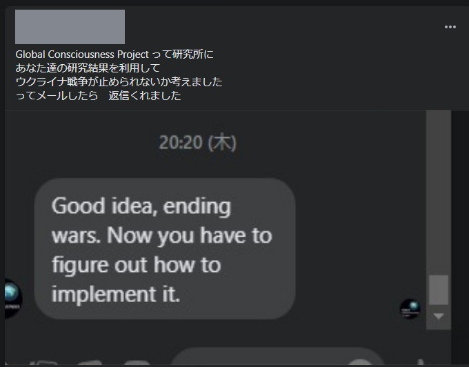 I will use the research results of the Global Consciousness Project