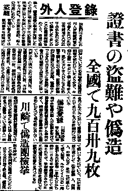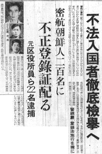 数百名の不法入国朝鮮人にニセの登録書が出されたほか