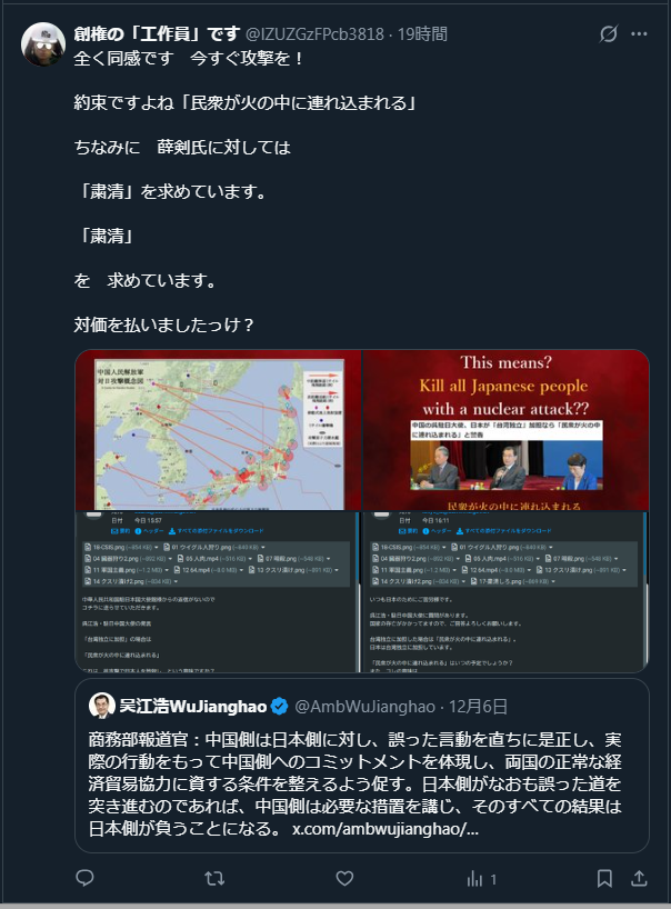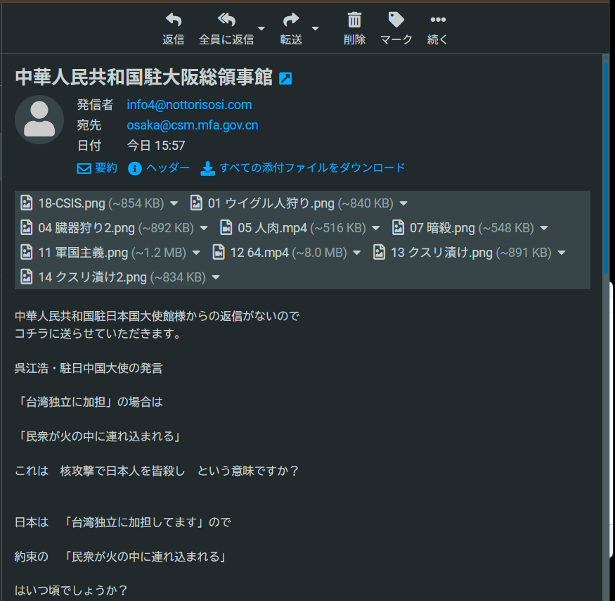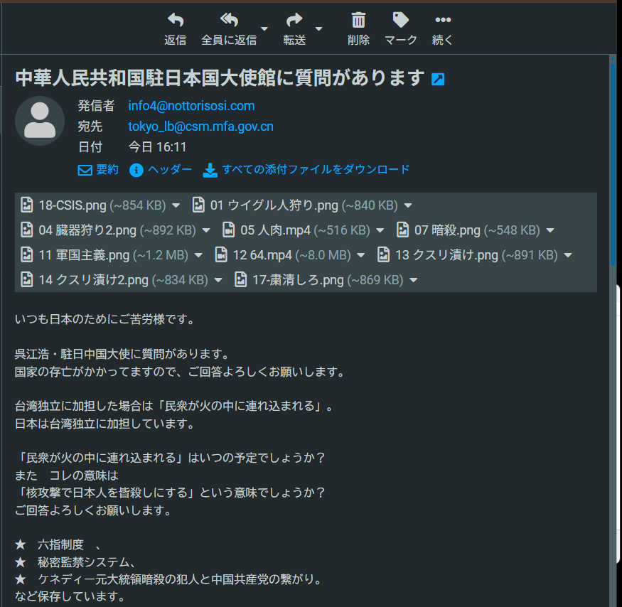 日本国民を皆殺しすると、脅迫は断じて許せません