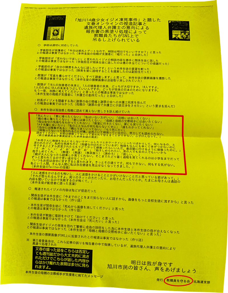 伏線で 「いじめの重大事態に関するデマの払拭を求めることについて」なる