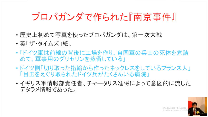 ⑥<(日中戦争は8年続いたが)南京市以外での大虐殺の話はありません(中略)とりわけ日本軍は列強の軍隊の中でも極めて規律正しい軍隊で、それは世界も認めていました>