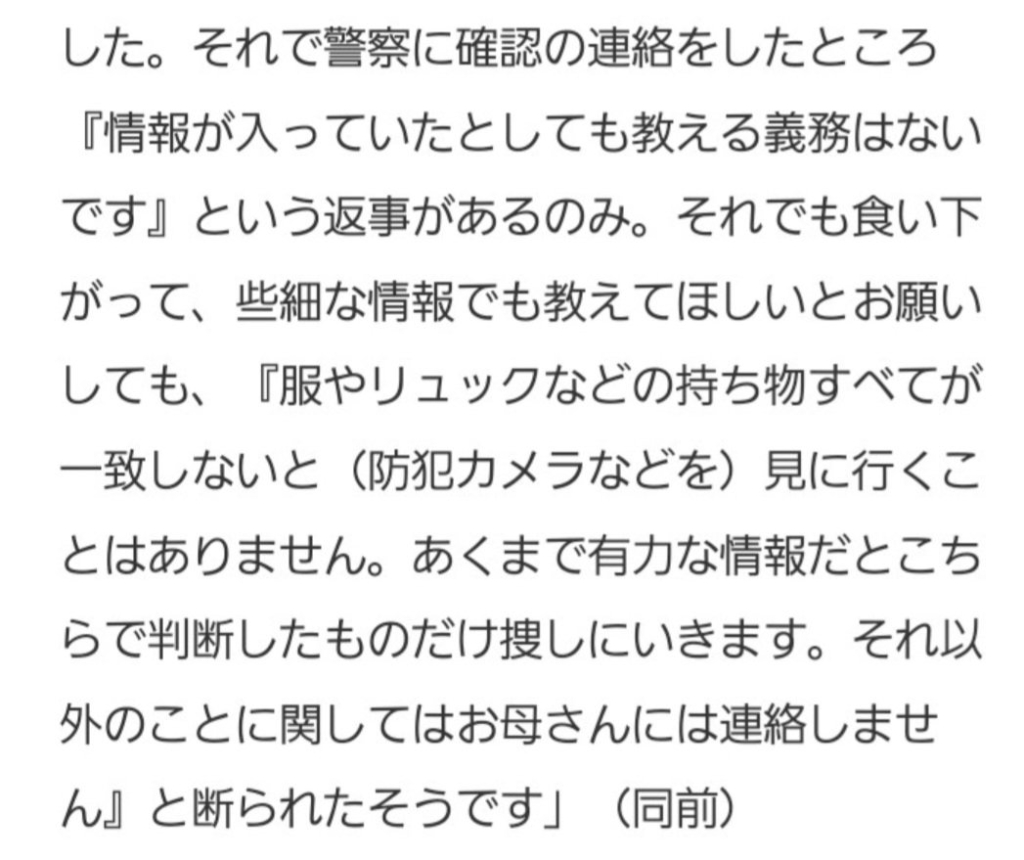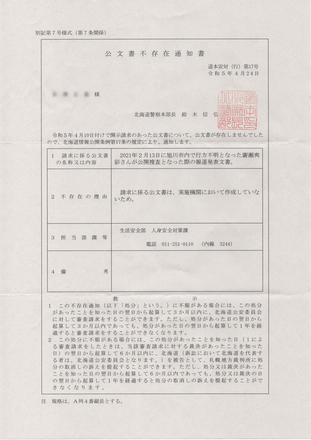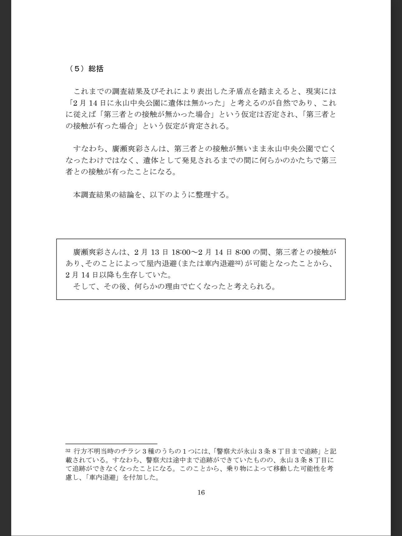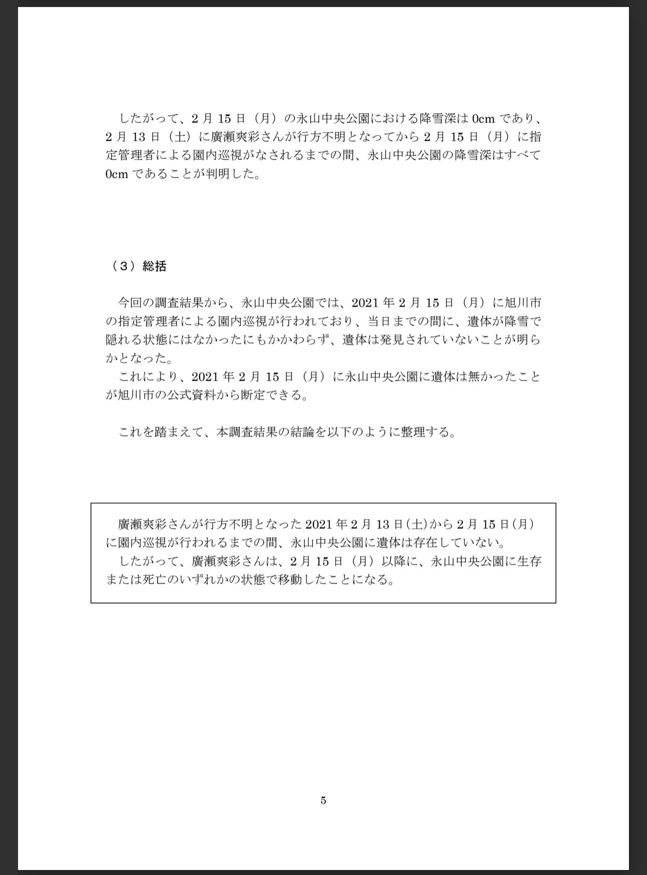 したがって、廣瀬爽彩さんは、2 月 15 日(月)以降に、永山中央公園に生存