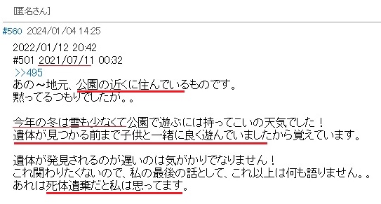 に園内巡視が行われるまでの間、永山中央公園に遺体は存在していない。