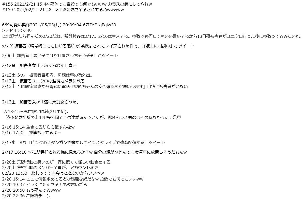 廣瀬爽彩さんが行方不明となった 2021 年 2 月 13 日(土)から 2 月 15 日(月)