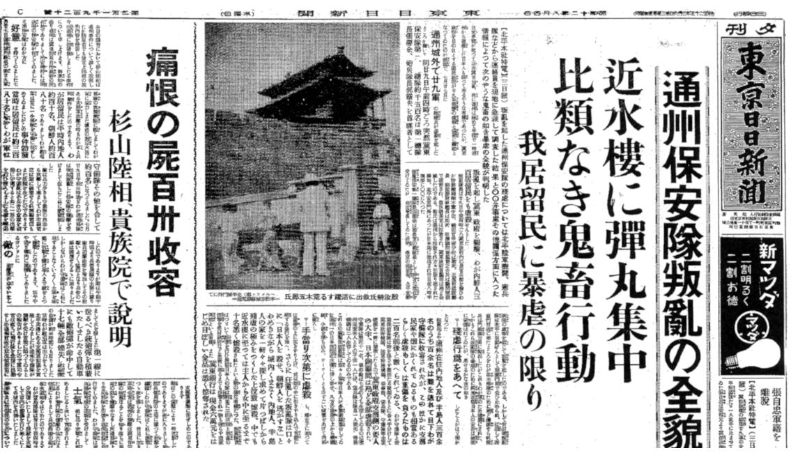 通州で暮らす日本人居留者たちが中国兵によって無残に虐殺された。